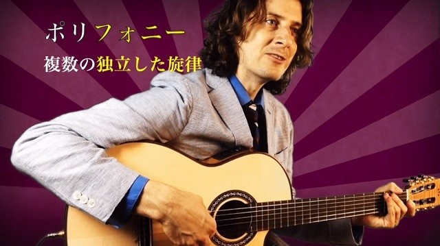Boøwyの『マリオネット』を弾き語りする上の動画では、ベースラインとギターラインを演奏しながら、“ポリフォニー”という音楽理論の説明を行っている。