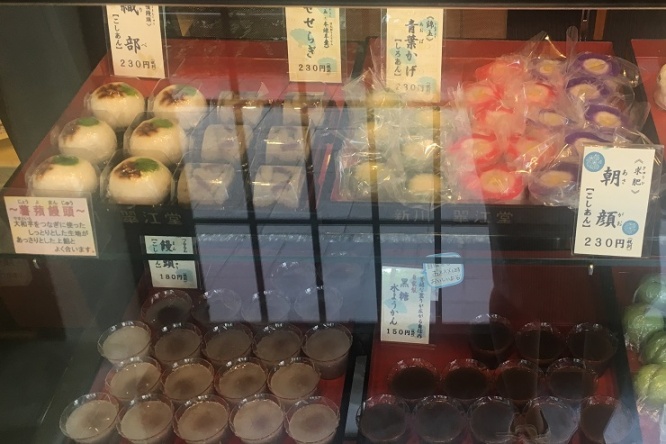 ショーケースには定番商品に加えて、季節ごとに変わる見た目も美しい和菓子が陳列されています。