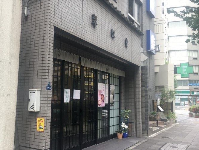 最寄り駅である八丁堀駅はJR京葉線と東京メトロ日比谷線が乗り入れていますが、その八丁堀駅から5分程歩いたところにあるのが、今回ご紹介する1946年創業の老舗和菓子屋「翠江堂(すいこうどう)」。