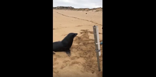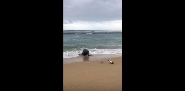 釣り人が釣り上げた“獲物”を追いかけて、海の奥から陸地にやってきたのは?