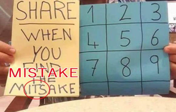 ”mistake(間違い)"のスペルが”mitsake”になっているのだ。