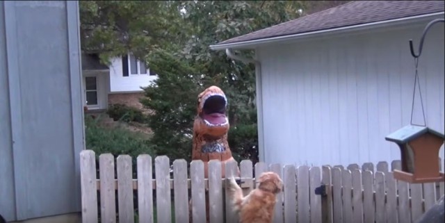 【ドッキリ動画】犬VS恐竜のバトルが勃発。その結果はまさかの…
