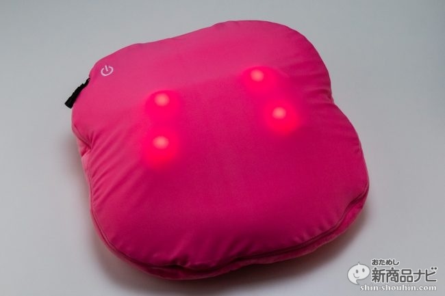 マッサージ機能は約30回/分で「もみ上げ」「もみ下げ」を行う。モードは電源スイッチを押すことで切り替えることができ、「もみ上げ」(ライト青)→「もみ下げ」(ライト青)→「もみ上げ+ヒーター」(ライト赤)→「もみ下げ+ヒーター」(ライト赤)の順で切り替わる。なお、ヒーター使用時の表面温度は36℃~41℃のため安全だ。ヒーター機能を搭載していることで、寒いこの時期には心地よく温めながら揉みほぐしてくれるのが大きなメリットだろう。