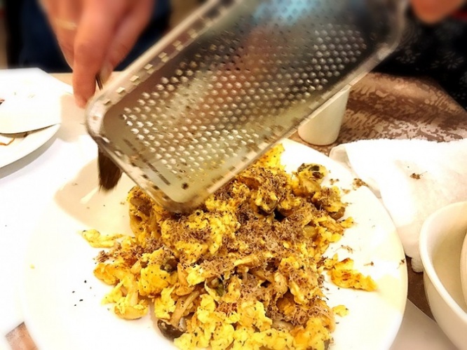 例えばタマゴ炒めにトリュフをかけただけのシンプルな料理は、トリュフの贅沢な香りとともに、さっぱりとした味付けのタマゴを味わう事ができます。