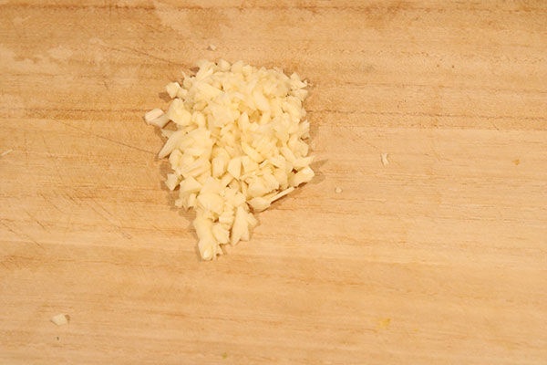 キャベツともやしを茹でている間にニンニクをみじん切りにする。