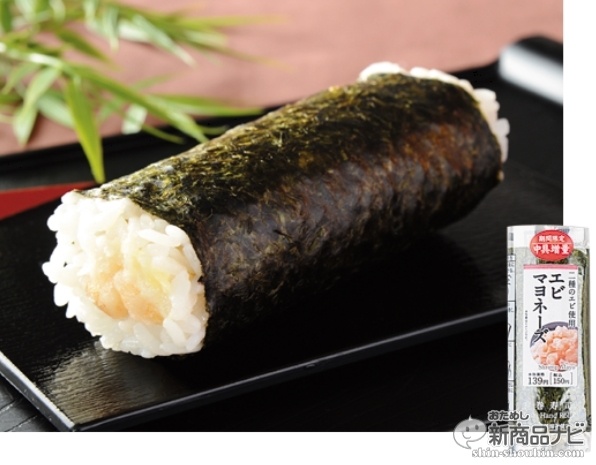 ■販売地域 全国 ■商品概要 「エビマヨネーズ」の手巻寿司。食感の異なる2種類のエビを、エビの風味をきかせた濃厚でまろやかなエビマヨネーズで和えた。