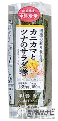■手巻寿司 カニカマとツナのサラダ巻(増量) 150円(税込)