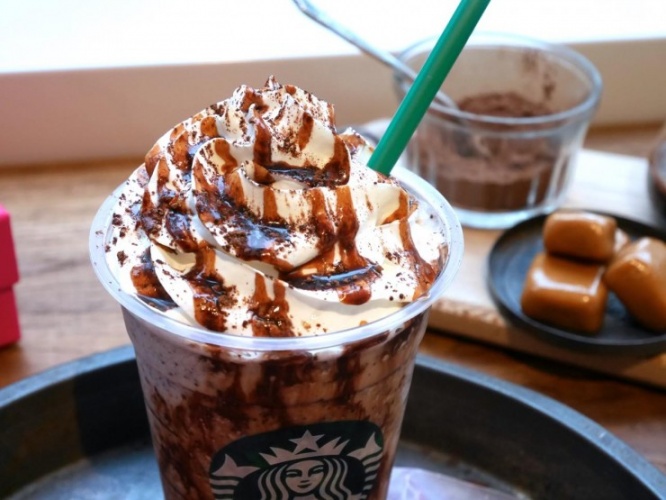 ミルクとコーヒーチョコレートソース、味わいの奥行にミルキーさを与えるホワイトモカがベースになっており、そしてつぶつぶとした食感をプラスするチョコレートチップがふんだんに混ぜ込まれています。チョコレートチップは通常のフラペチーノの規定量より2倍以上入っており、まさにチョコレートまみれのフラペチーノを楽しむことができます。