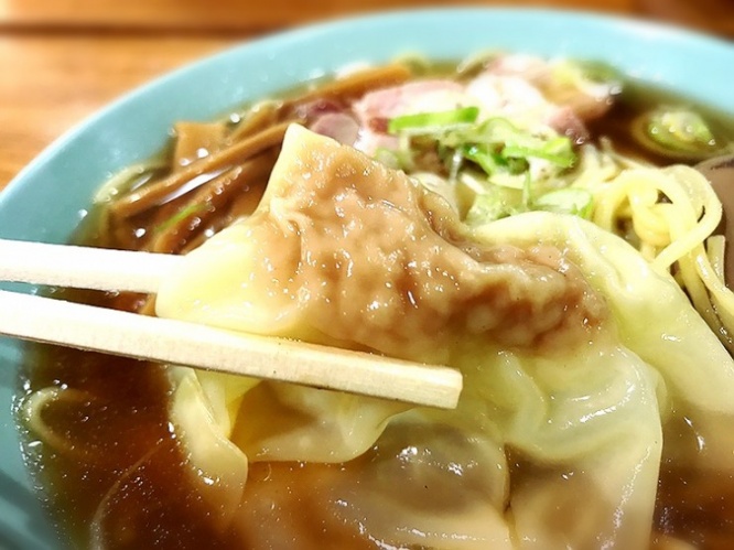 たっぷりと具のつまった、つるんとした滑らかな舌触りが特徴のワンタン。