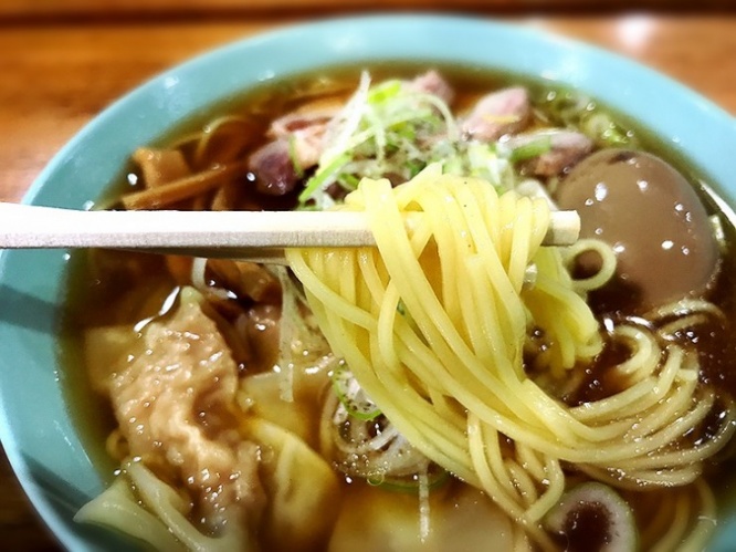 勢いよく麺をすすりこめば、美味しい醤油スープの香りが口の中一杯に広がっていく。