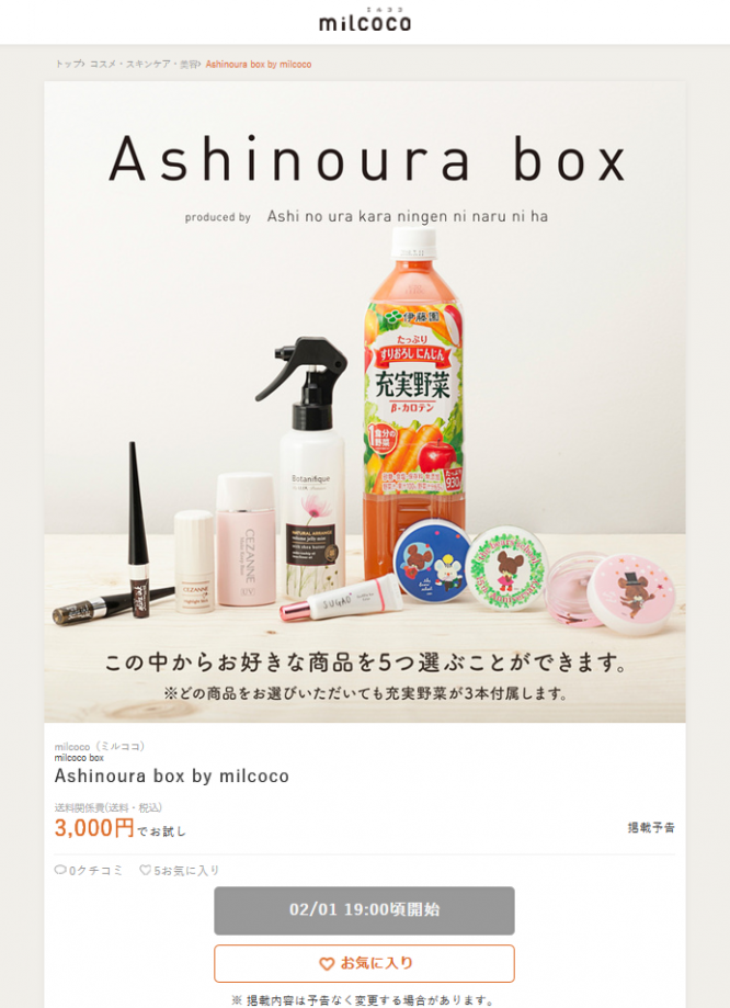 「Ashinoura box by milcoco」が2月1日に発売決定