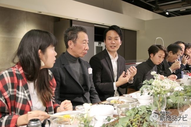 記者発表会終了後は、「双円」第1弾プロジェクトメンバーを囲んで、「双円」の器に盛り付けられた料理を楽しむ食事会が催された。アエテの鈴木社長は「双円ブランドに関しては、まずはこの1年、じっくりと器を発信していきます。今後は漠然とですが、照明器具とか、そういった製品をデザインしていければ」と展望を述べた。
