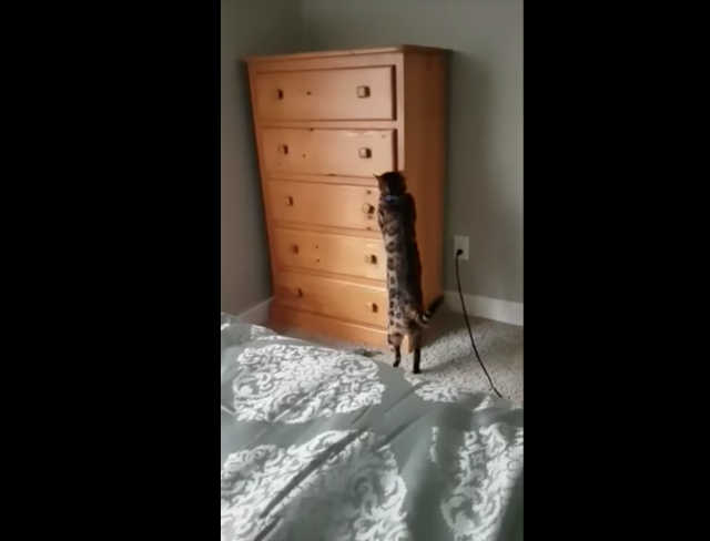 タンスの前にやってきた一匹の猫。