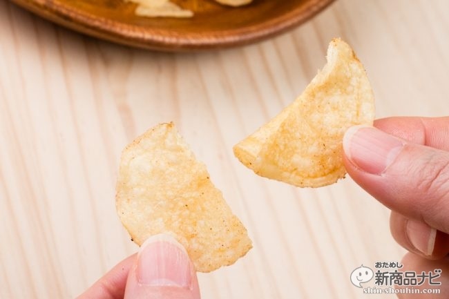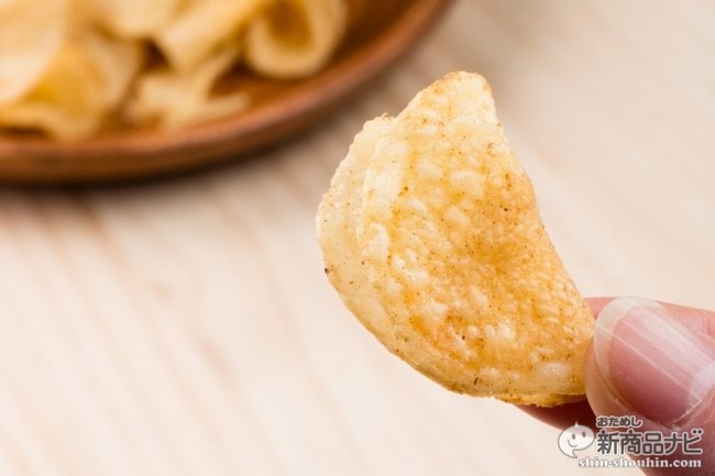 カルビーの『カルビー 堅あげポテト 炭火焼き鶏皮 うま塩仕立て』(70g・実勢価格 税込173円・発売中※セブン&アイ限定)は、歯槽膿漏キラーとして知られる分厚くガリガリに堅いのが特徴の「堅あげポテト」シリーズから、おつまみとしてスピンアウト誕生した「堅つまシリーズ」の一品。