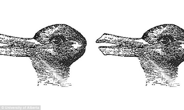 彼は研究の協力者たちに、アヒルとウサギの絵を見せて、何が見えるかを確認しました。半数の人は2匹のアヒルか2匹のウサギを見ることはできましたが、アヒルとウサギを1匹ずつ見ることはできませんでした。