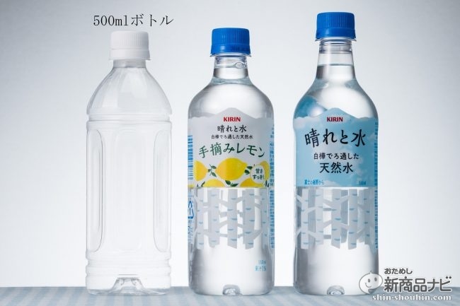 さらに今回、手摘みしたレモン果汁を加えたフレーバーウォーター『晴れと水 手摘みレモン』(550ml・希望小売価格 税抜120円・2018年3月13日発売)も同時発売。キュートなパッケージには「甘さすっきり」の文字があるが、裏を言えば「少しは甘い」ということ?ならば甘さやカロリーも気になるところ…ということで、2本まとめて検証してみる。