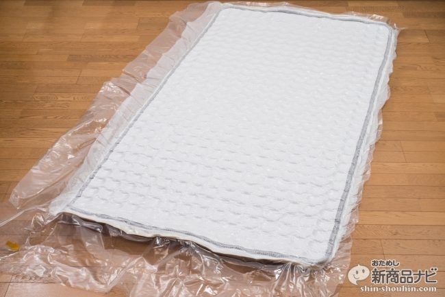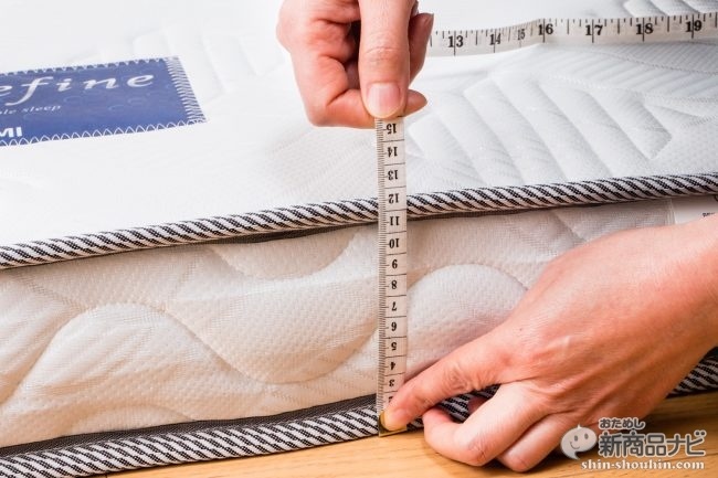 圧縮から復元すると厚さ12cmになるが底付き感はない圧縮から復元すると、厚さ12cmの比較的薄型のマットレスに早変わり。こんな薄くて大丈夫なのかと不安になるかもしれないが、でも大丈夫。ハイベッドなどに求められる10cm以下の薄型ポケットコイルを生産できる技術が、身体をしっかりとホールドしてくれる。