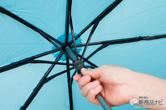 また傘のシャフトにはドデカゴン形状(12角形)を採用し、通常、折りたたみ傘には実施しない強度実験を行い、シャフトの湾曲、折れ、割れがないことを確認。加えて、傘の上部に行くほどシャフトを太くする、普通の折りたたみ傘とは逆のシャフト形状にすることで、強風に対してグラつきが生じにくい構造になっている。
