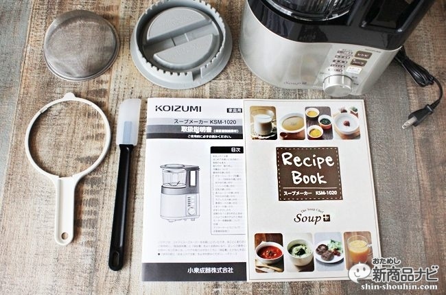新しいレシピブックには約100種類以上ものレシピが掲載されている。滑らかな口当たりのポタージュ(トマト、アスパラ、ブロッコリー、えびのビスクなど)や冷製ポタージュ(ガスパチョ、カリフラワーなど)。素材感を残したミネストローネ、あさりのチャウダースープなど具のあるスープメニューも充実。おかゆ、リゾットは生米から作れる。大豆と水で、本格的な豆乳とおからも約20分で作れる。