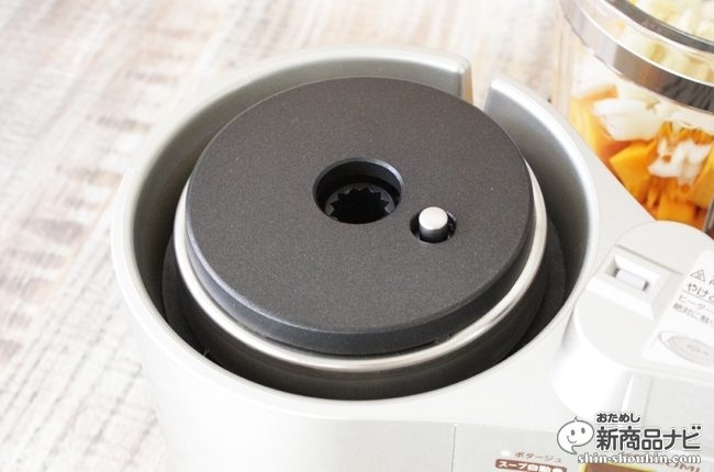 素材は2㎝角にカットしておこう材料をすべて入れて、レシピメニューからポタージュを選び、スタートボタンを押すだけ。