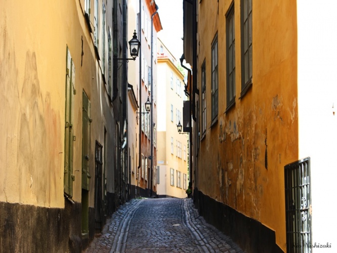 ガムラスタンを歩いていると、両手が届くほどの細い路地のモーテン・トローツィグ・グレンがあったり、トンネルのようになっている不思議な場所も見られます。