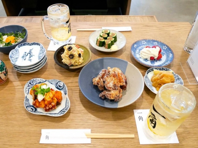 今では「一角」オープン記念として、ハッピーアワー(17時~19時)の時間帯に、唐揚げ1個とハイボール1杯が100円で味わえる「ハイカラ」セットを期間限定で提供中。もちろん唐揚げとハイボールの相性は抜群です。