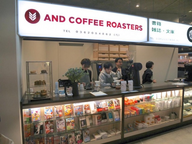 入口を入ると、熊本を拠点とする自家焙煎スペシャルティコーヒーショップ「AND COFFEE ROASTERS(アンドコーヒーロースターズ)」が、香ばしいコーヒーの香りとともに出迎えてくれます。