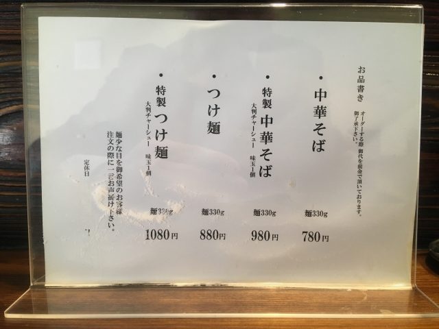 メニューは「中華そば」と「つけ麺」に具増しの特製のみという潔い構成。麺量がデフォルトで330gという太っ腹は、厨房の奥に鎮座する製麺機で自家製されるからこそでしょうか。