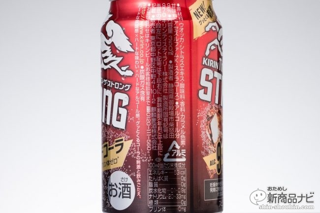 最後に「ハードコーラ」を試飲してみる。何かをイメージさせるかのように、他の2種類と違って缶のパッケージデザインはレッドを基調としている。コーラというと赤だよなぁ。なお、シリーズすべてにキリンの聖獣である麒麟(きりん/中国の想像上のケモノ)がデザインされているが、実は同社のRTDでこの聖獣が描かれるのは初めてのことらしい。つまり、同社のこのジャンルにおける本気度がうかがわれるということなのだろうか。