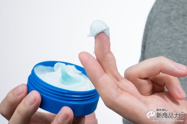 指先に適量を取ってみる。淡いブルーのクリームのような印象。テクスチャーの伸びがよく、そこまで量を取らなくても手のひらにスルッと広がる。強力なマットタイプなので、無造作ヘアに向いている。