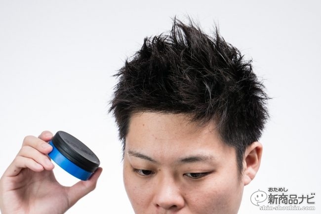 続いて、緑の「セージの香り」をチェック。こちらも無造作ヘアを作るのに向くタイプなのだが、「メッシーフロー」と銘打たれているように、流れを作るために塗り込むことを想定している。無造作でありながら、ヘアの自然な流れを演出できるのだ。