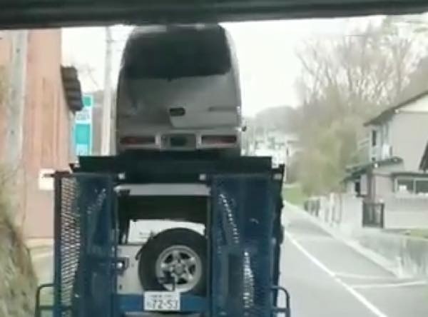 こちらの動画は、上に軽自動車を積んだレッカー車がちょっと低めの高架下を通過しようとしているところだ。