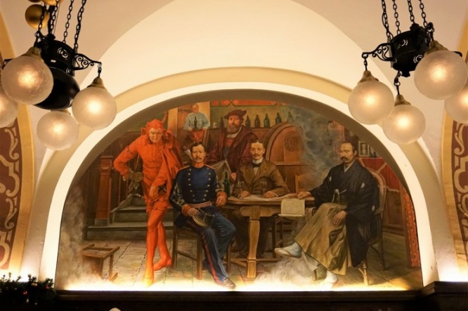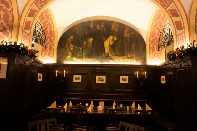 その言い伝えに強く惹かれたゲーテは、代表作「ファウスト」の悲劇第一部にこのアウアーバッハス・ケラーを登場させたのです。それ以来、この酒場は世界で最も有名なレストランのひとつに名を連ねています。