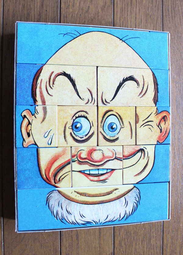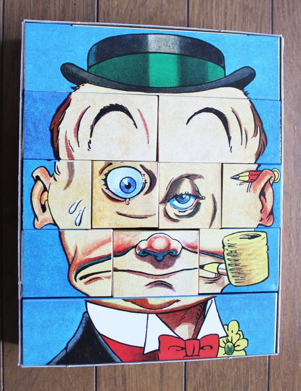 箱を開けると、いきなりこんな顔が出てきました。「ウワッ!なんだコレ?」顔だということはわかりますが、いくつかにわかれていますよ。それにしても、こんな顔の人っているのかなぁ?