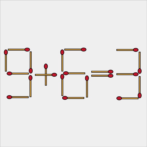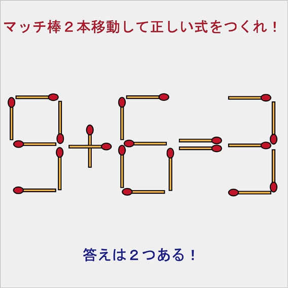 できる人は気付き力抜群!マッチ棒2本移動して正しい式にせよ。