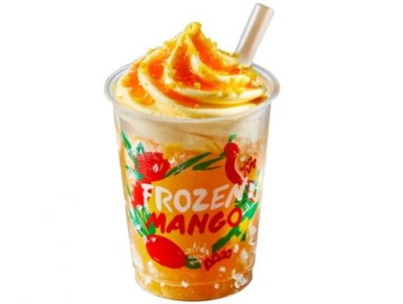レンジで温めて飲みごろになる、マンゴー果肉を混ぜ込んだフローズンドリンク。北海道根釧地区産生クリーム入りのミルクアイスに、オレンジソース・マンゴークッキーをトッピング。