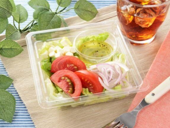 高リコピントマトをメインにした生野菜サラダ。トマトと相性のよいクリームチーズをトッピングし、カプレーゼ風に仕上げた。ワインビネガー使用のさっぱりイタリアンドレッシング付き。
