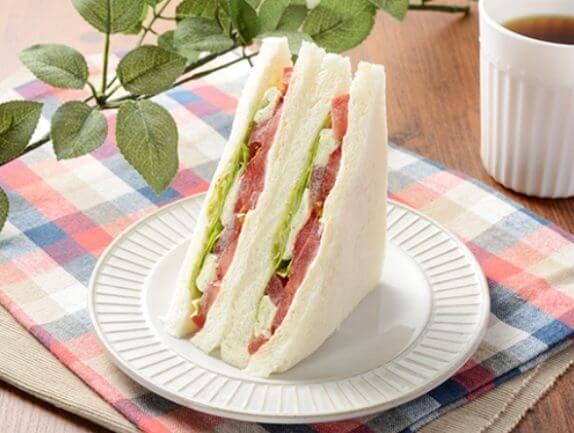カゴメ高リコピントマトを主役に仕立てたサンド。バジルで味付けしたクリームチーズも合わせた。高リコピントマトのさわやかな酸味と、バジルの香り、クリームチーズのミルク感が楽しめる。