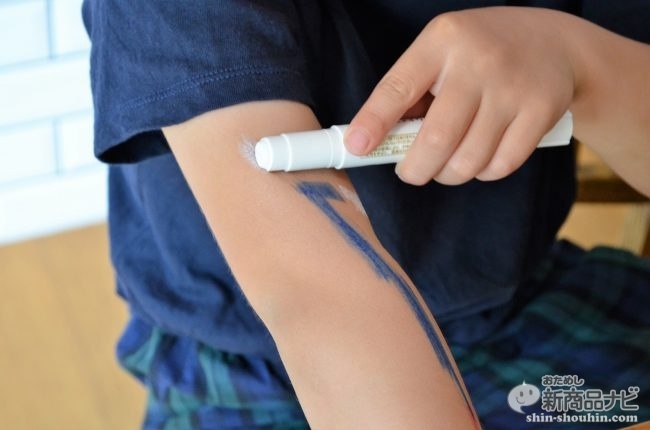 最大の特徴は、水で簡単に落とせること。繰り出し式で折れにくく、手が汚れにくいのも、ありがたいポイントだ。