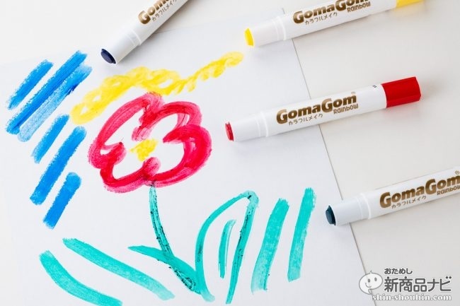 紙に書くとこんな感じ。やわらかい書き心地で発色がとても鮮やか株式会社ハピラ(東京都中央区)が発売した「GOMAGOM(ゴマゴム)」シリーズの『カラフルメイク』(税別720円・2018年6月10日発売)は、ヨーロッパで人気のマルチお絵かきクレヨン。