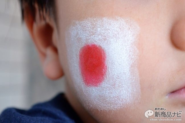 息子の顔には、ド定番の“日の丸マーク”を。気づけば、私も息子も笑顔全開でペインティング!!