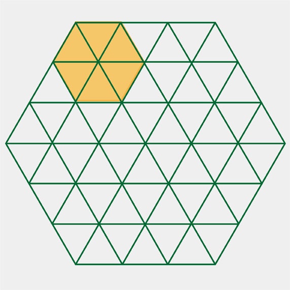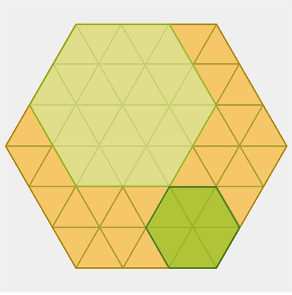 先ず、中位の大きさの正六角形の数を数えましょう。