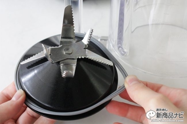 6枚刃のパワフルな波刃カッター。葉物野菜や果物など繊維質の多い食品も、従来品では実現出来なかった滑らかさにする。