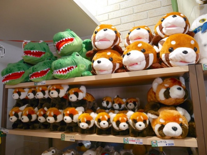動物を観た後は、お土産を購入するのも楽しみの一つ。正門を入って右横にある森をイメージしたショップ「「動物たちのもり1」では、レッサーパンダのぬいぐるみやクッキー、文房具など、人気のレッサーパンダグッズが並んでいます。
