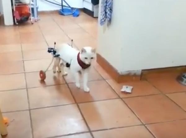 後脚が不自由なこちらの猫は、自力だけで歩くのは無理だが補助輪があればこうして楽しそうに遊ぶこともできる。