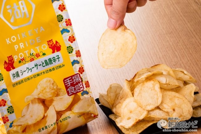 沖縄の酸味と辛味を取り入れた『KOIKEYA PRIDE POTATO 手揚食感 沖縄 シークヮーサーと島唐辛子』は辛さが遅れてやってくる! (2/2ページ)