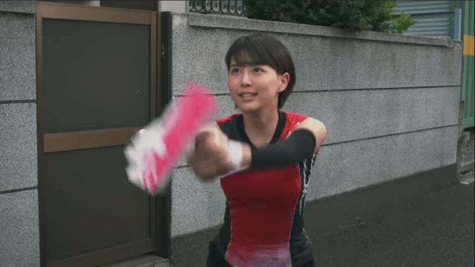しかしそのティッシュを紳士に届けるために突如ローラーホッケーの道具を装着した2人の女性が登場!