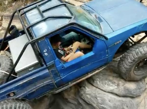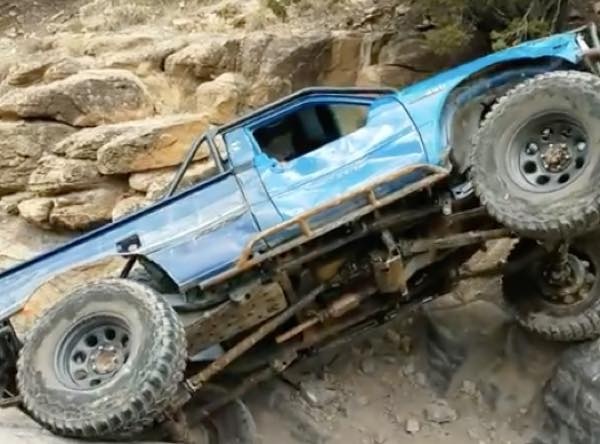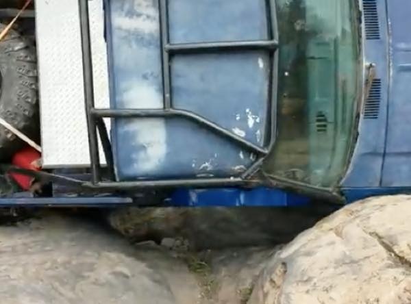 こちらの動画でも、険しい岩道をトラックで爆進しているのだが・・・