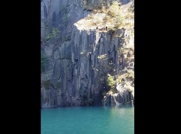 飛び込む場所の下の様子を念入りに確認し、1人が飛び込む!
