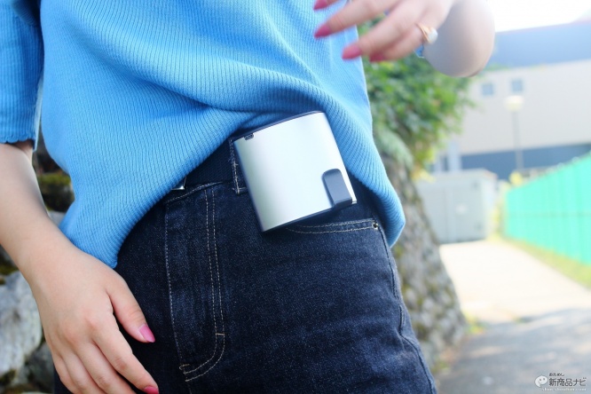 基本の装着方法はベルト。風を上に向けて出してシャツの中に風を送り込むのが基本だが、ズボンの内側に装着して風を下に向けるように装着するとズボンの蒸れが解消されるという。